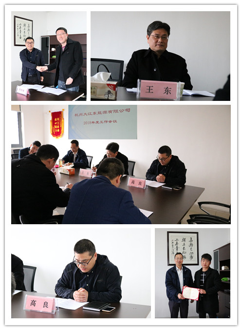 2月28日上午,大江东能源公司召开2018年度工作会议暨二月份全体员工会议,集团公司总经理王东莅临参会指导。首先由公司负责人高良作题为《百折不挠齐共进 千方百计求突破 聚焦发展 砥砺前行》的工作报告;随后,高良与部门负责人签订了2018年度部门目标责任书;东部联合支部书记方辉为公司年度优秀员工颁奖;随后,大家结合各自岗位工作,谈心得、提建议,气氛热烈融洽。