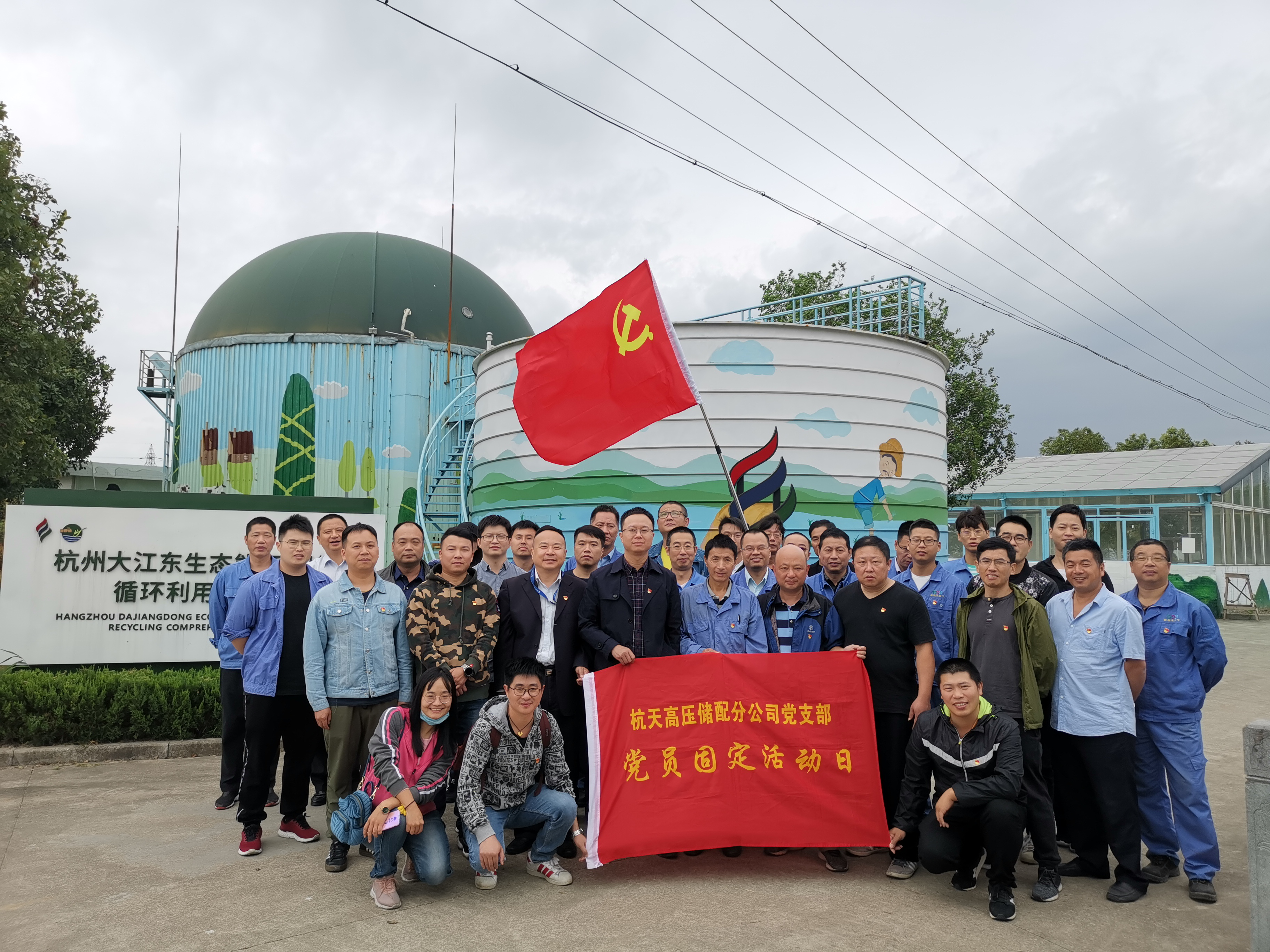九点三十分,大巴车开到大江东能源的门口,党员们在小周和小褚的带领下,参观了优家农场,在沼气罐前合影留念。