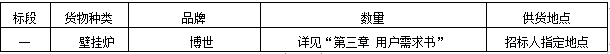 2.1 招标范围:目前房产项目需要的博世壁挂炉及安装服务,具体详见“第三章 用户需求书”。