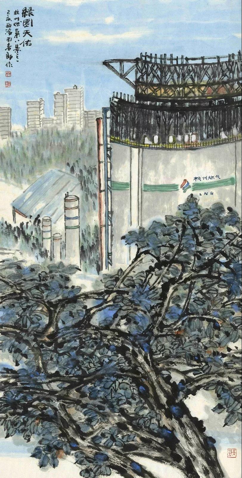 此景指杭州市东、西部天然气应急气源站工程,一语多关,是杭州市保障民生、佑护蓝天白云的基础设施。由东部LNG应急气源站和西部LNG应急气源站组成,LNG总贮存规模为14950m³(折合气态天然气约900万Nm³),能够在上游断供的情况下,确保杭州市民用气平峰6天、高峰3天的应急用气量。该工程获评第十五届“詹天佑”奖。